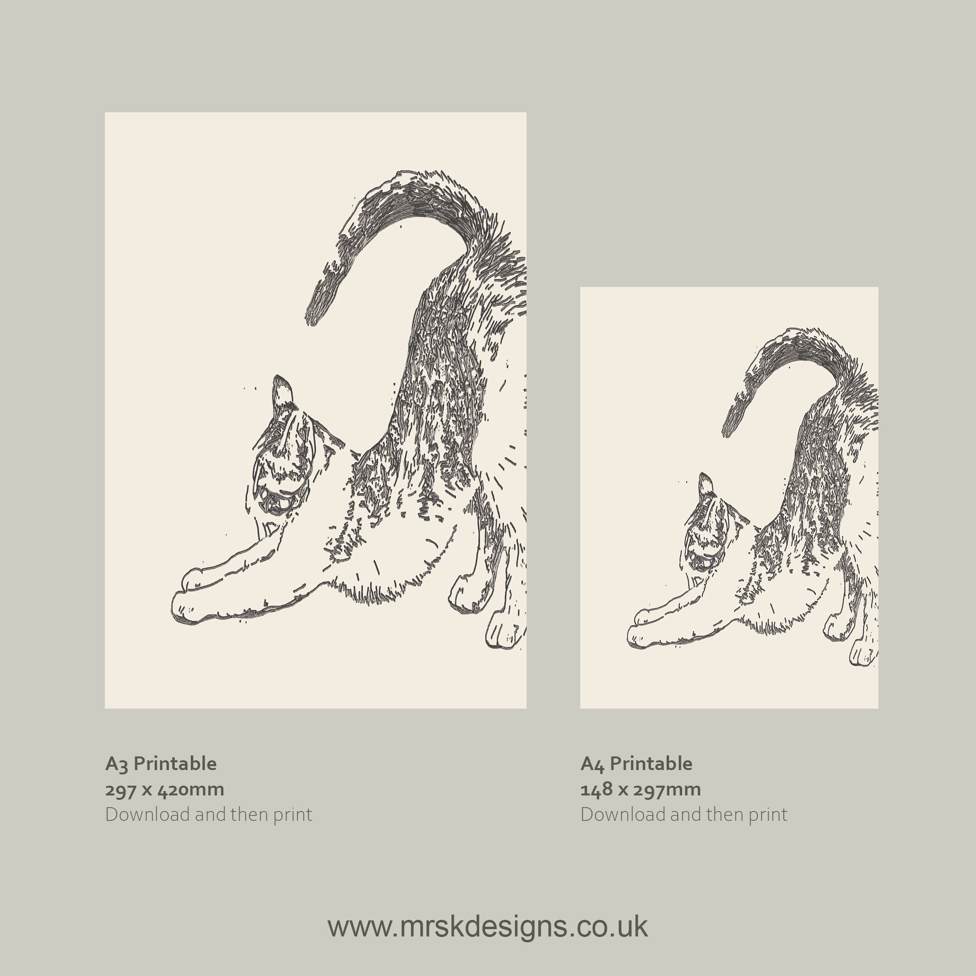 This hand-drawn, stretching cat is perfect for all you cat lovers out there.