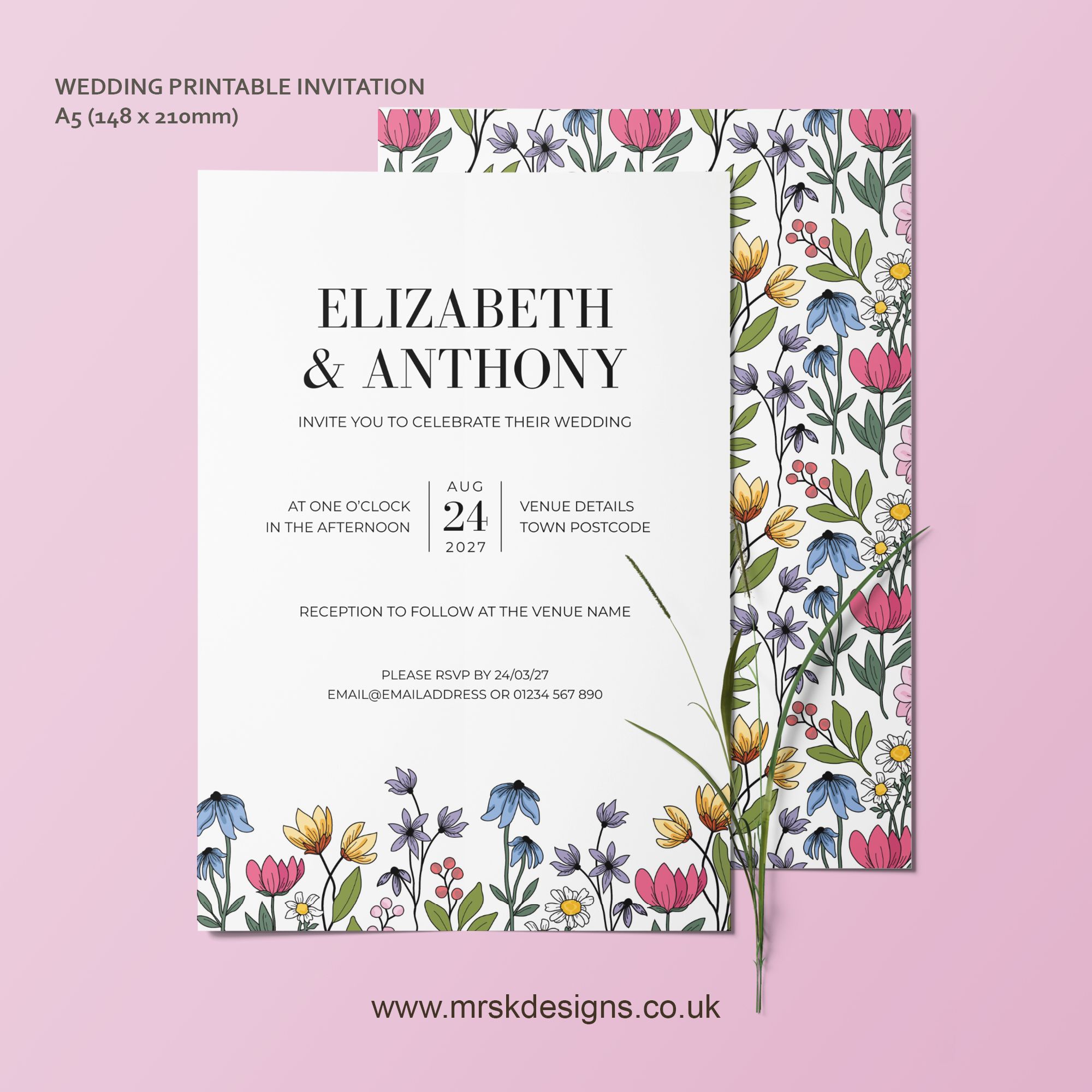 A5 (148 x 210mm) Wedding Invitation